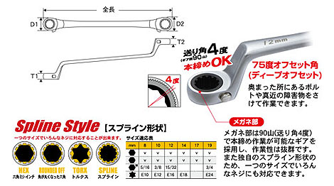 ディープオフセットスプラインギアレンチ3本組セット(廃番)